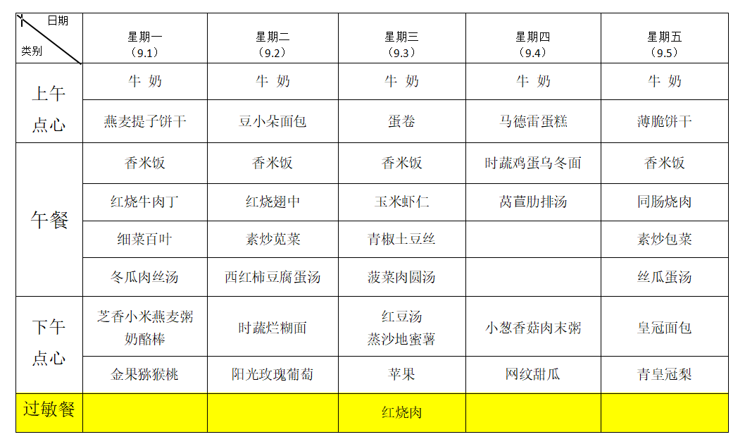 9月1日—9月5日幼儿食谱
