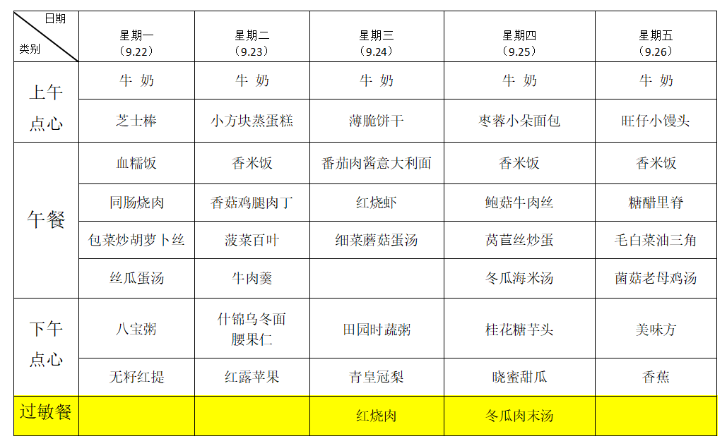 9月22日—9月26日幼儿食谱